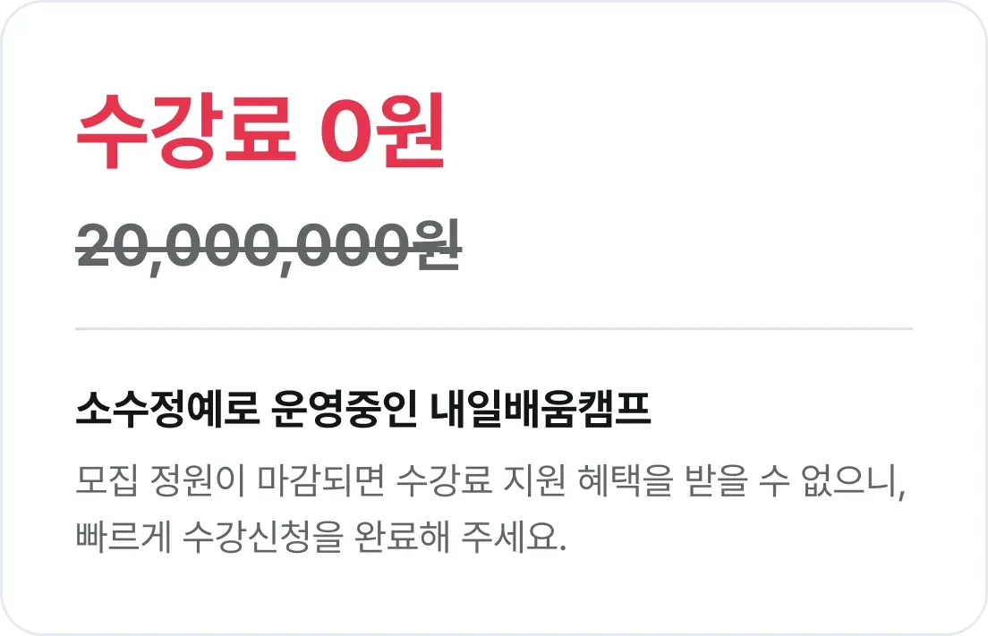 내일배움카드가 있어야 스파르타클럽 내일배움캠프에 참여할 수 있어요.